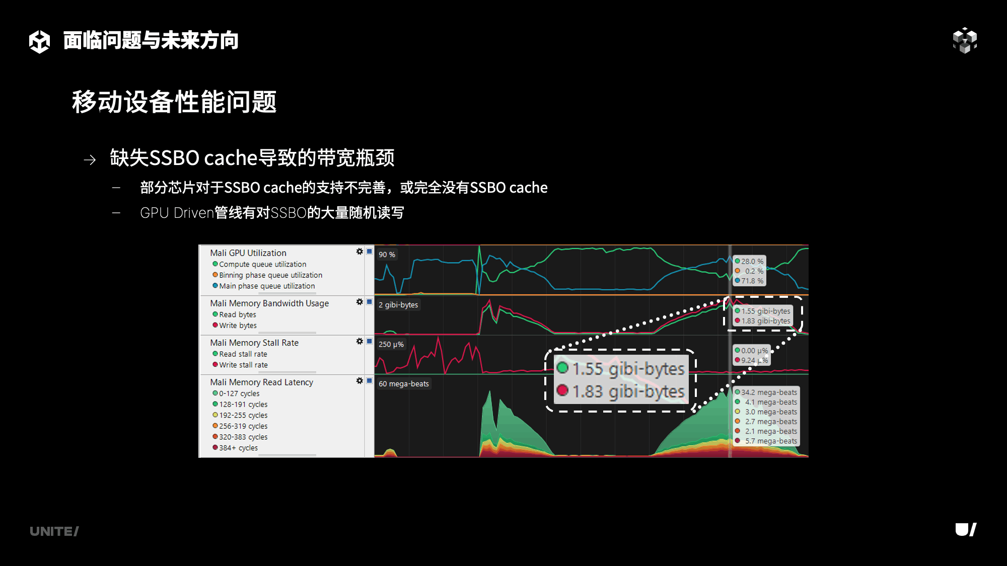 比如GPU Driven的渲染管线所必需的特性就是SSBO,GPUDriven渲染管线所依赖的SSBO在部分移动端芯片上支持不够完善,例如没有SSBO Cache,这会给我们带来严重的带宽性能瓶颈。